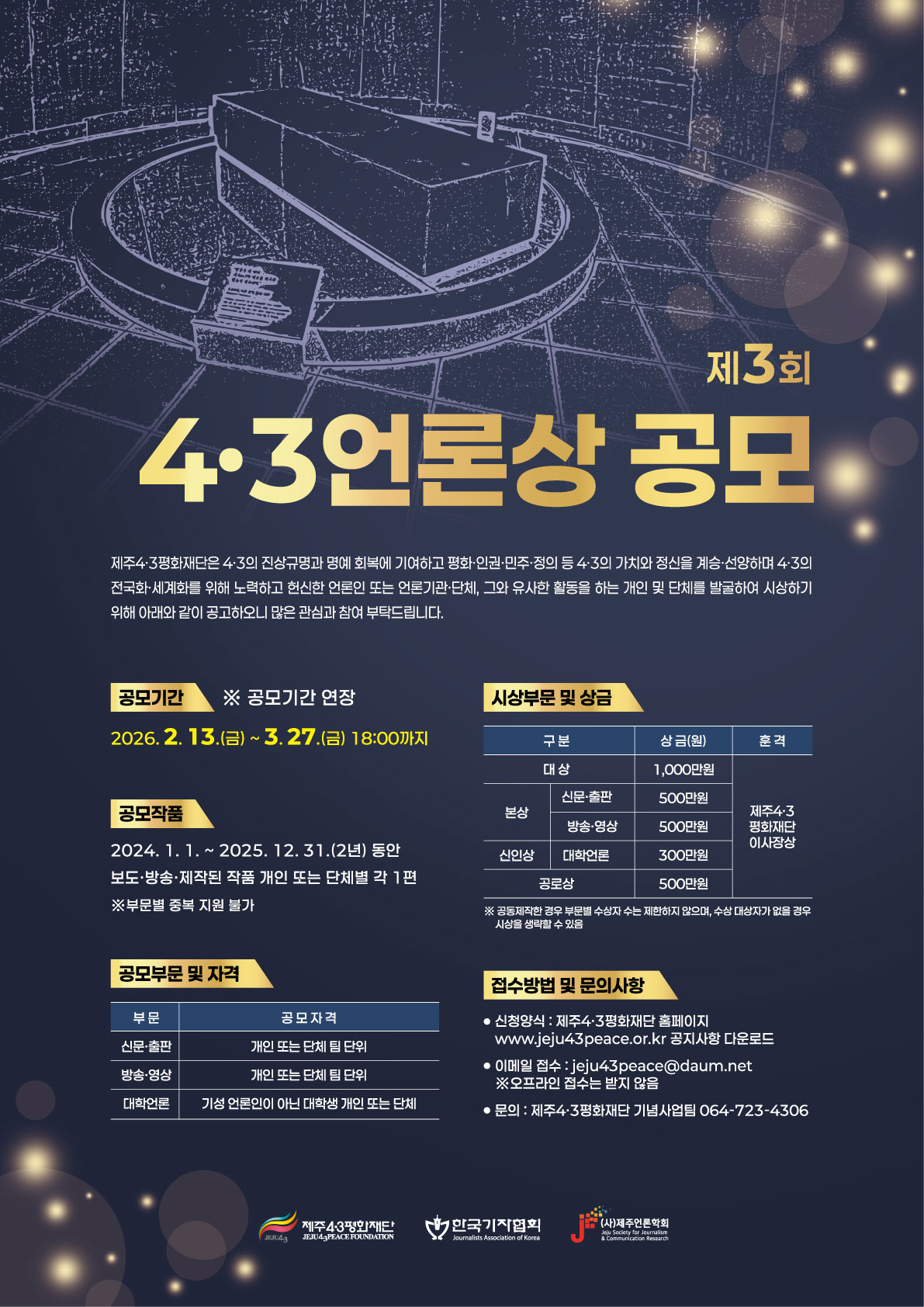 제3회 4․3언론상 공모기간 연장…이번달 27일까지