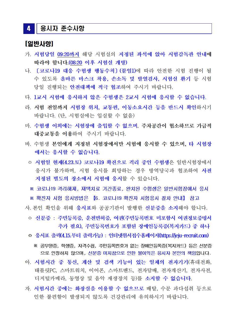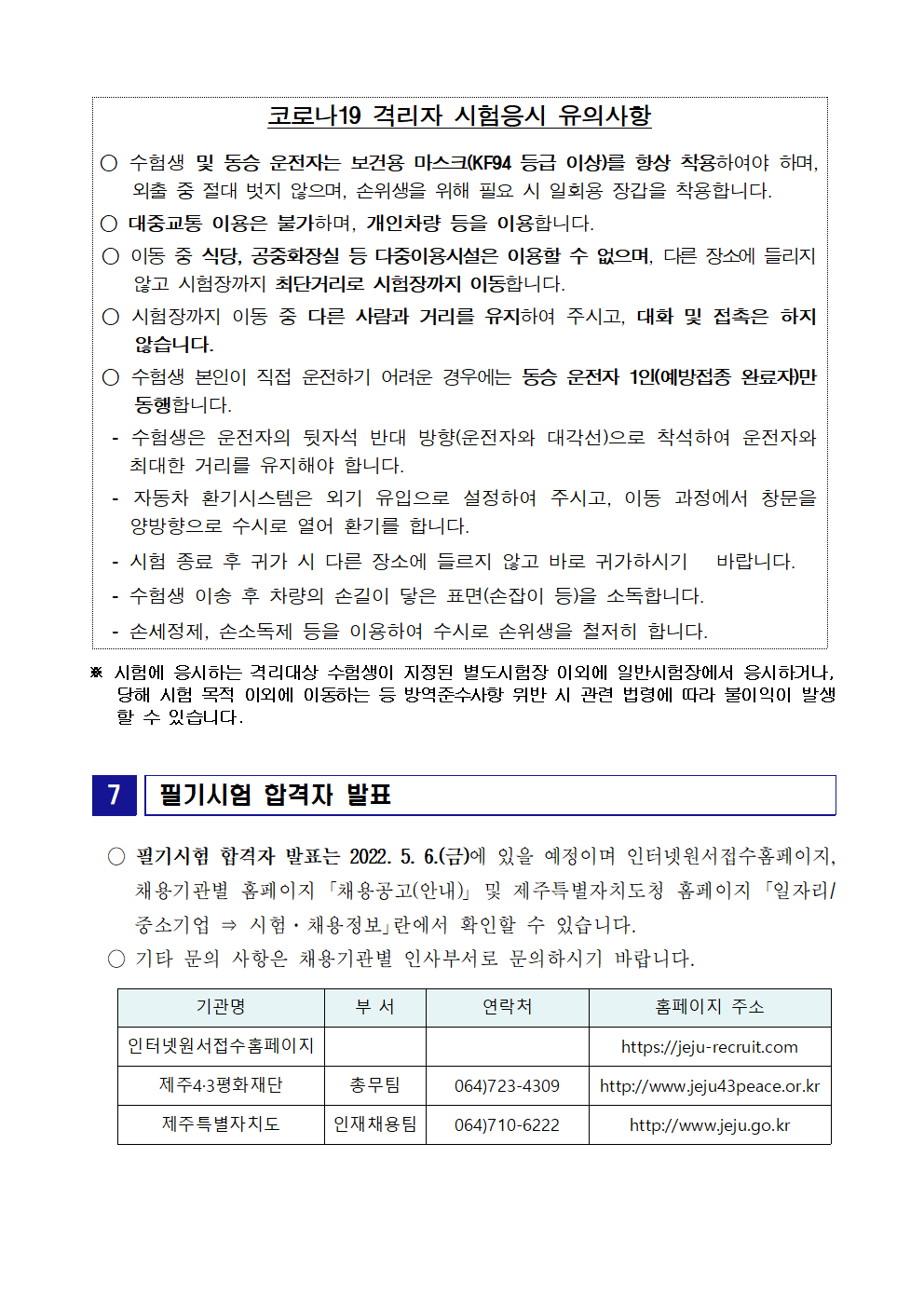 [공고] 2022년도 제1회 제주특별자치도 공공기관 직원 통합채용 필기시험 일시, 장소 및 응시자 준수사항 공고