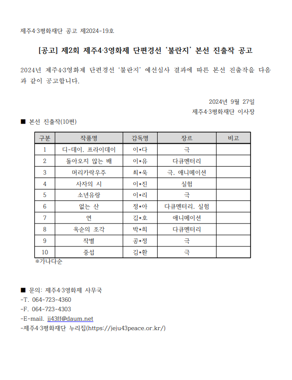 [공고]제2회 제주4.3영화제 단편경선 '불란지' 본선 진출작 공고