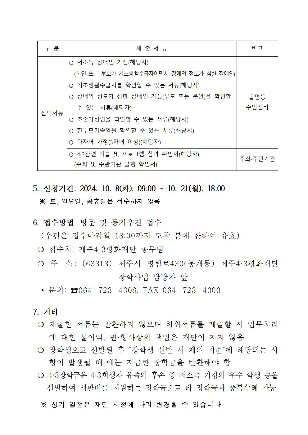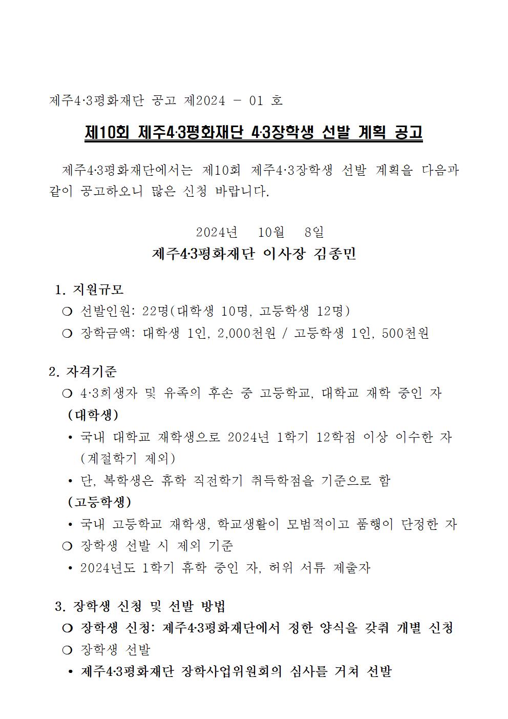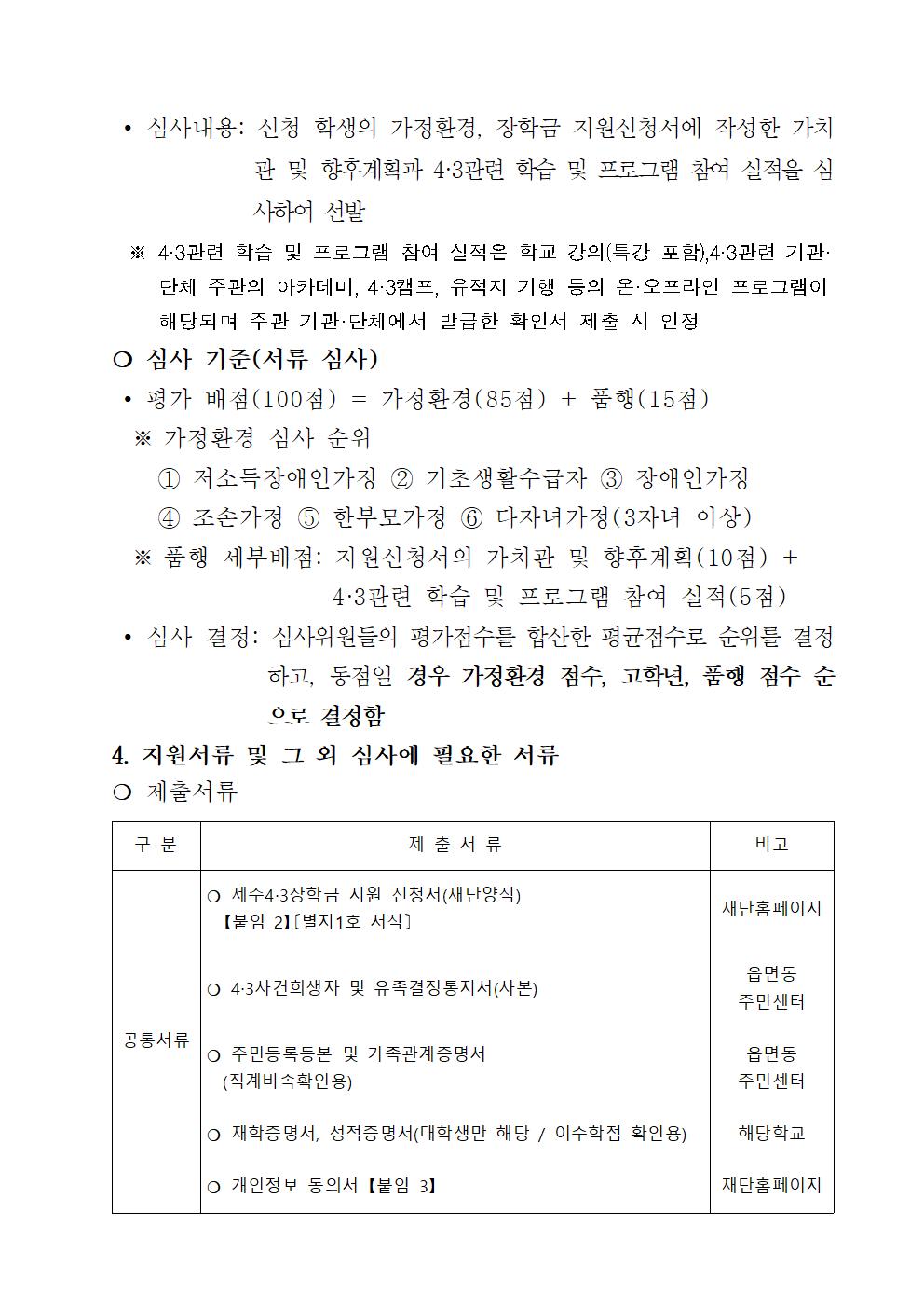 [장학]제10회 제주4・3장학생 선발 계획 공고