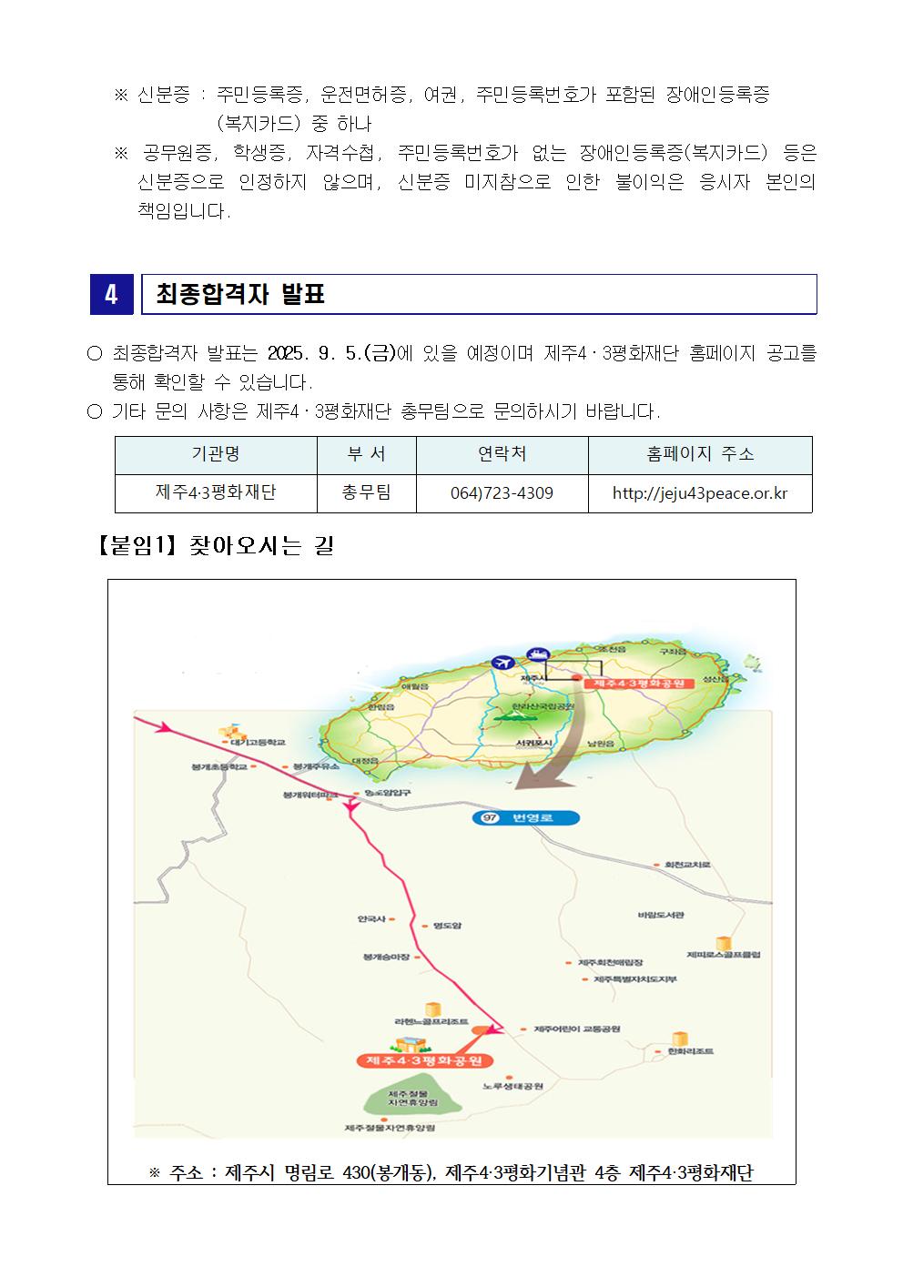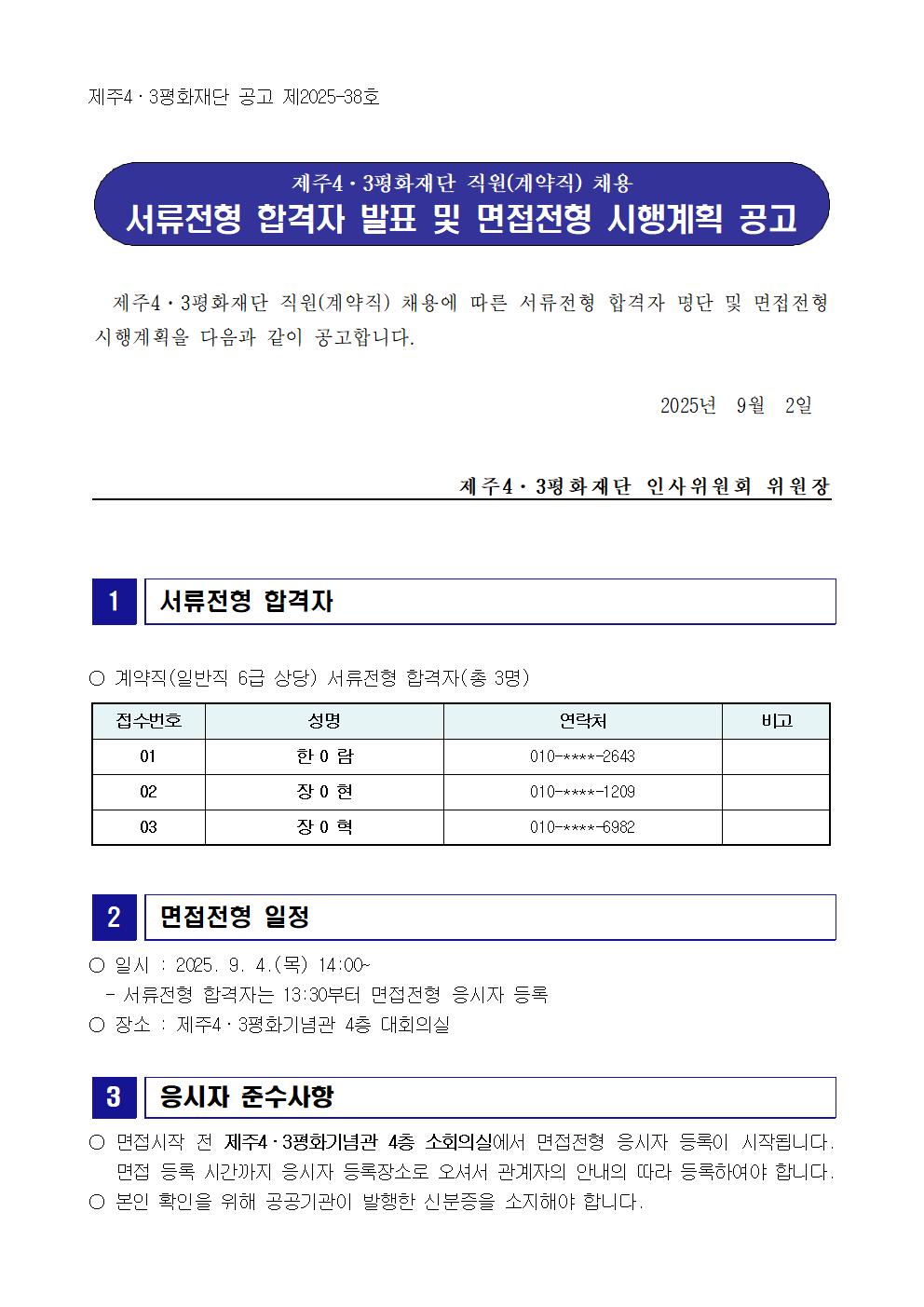 [채용]제주4.3평화재단 직원(계약직) 서류전형 합격자 발표 및 면접전형 시행계획 공고