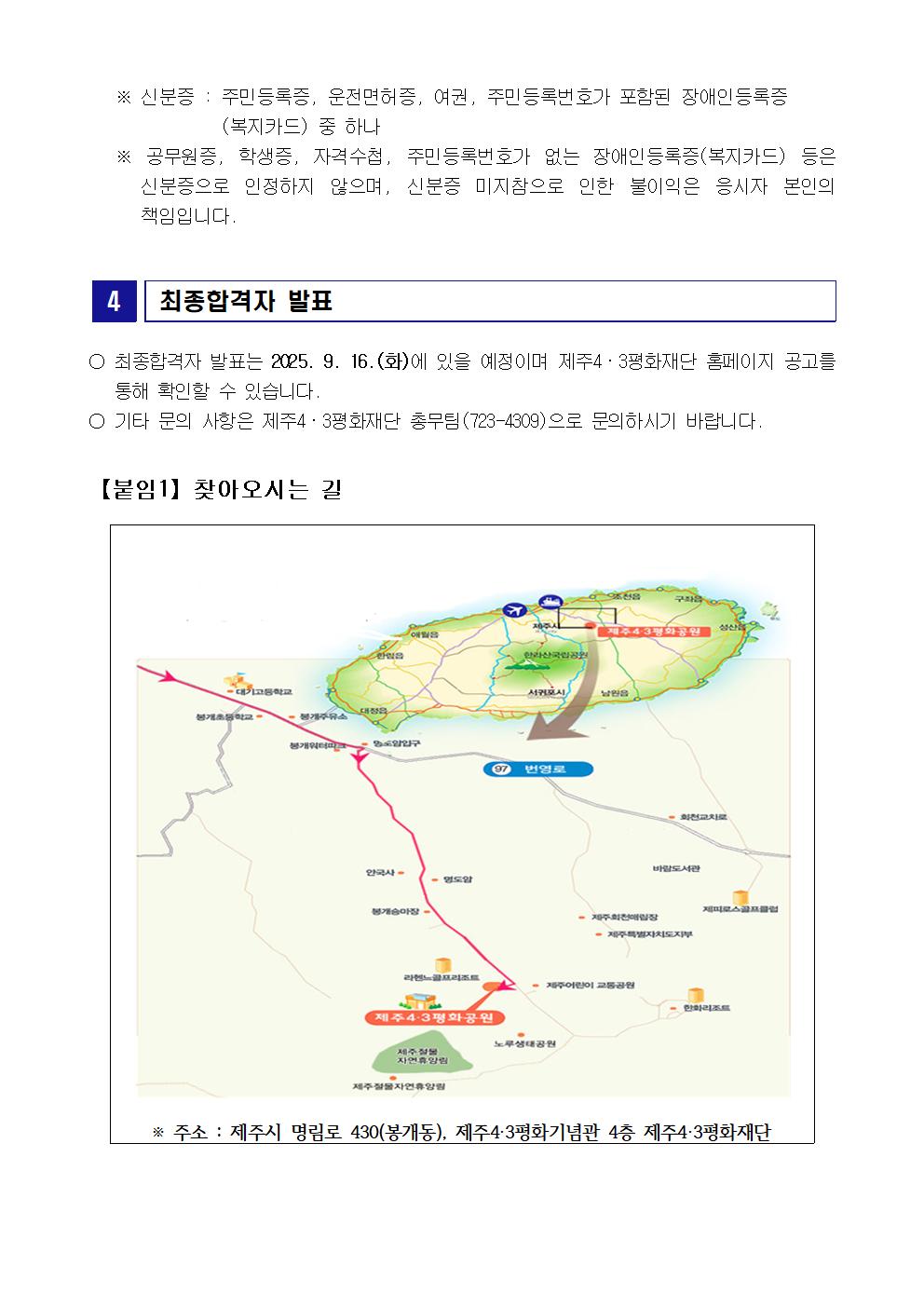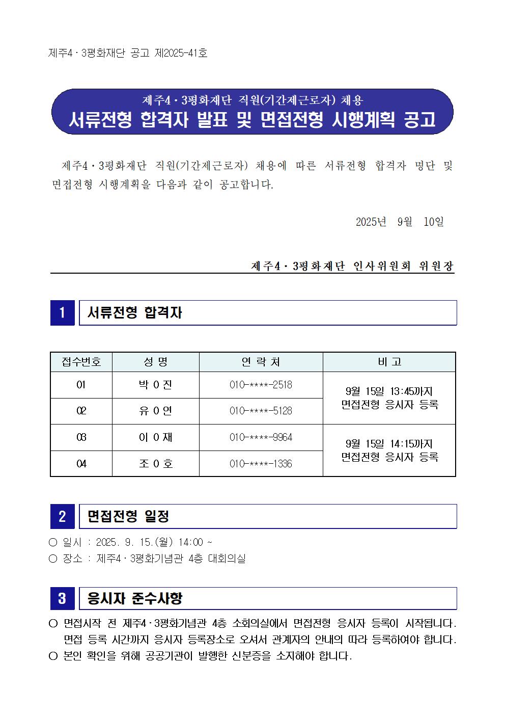 [채용]제주4.3평화재단 직원(기간제근로자) 서류전형 합격자 발표 및 면접전형 시행계획 공고
