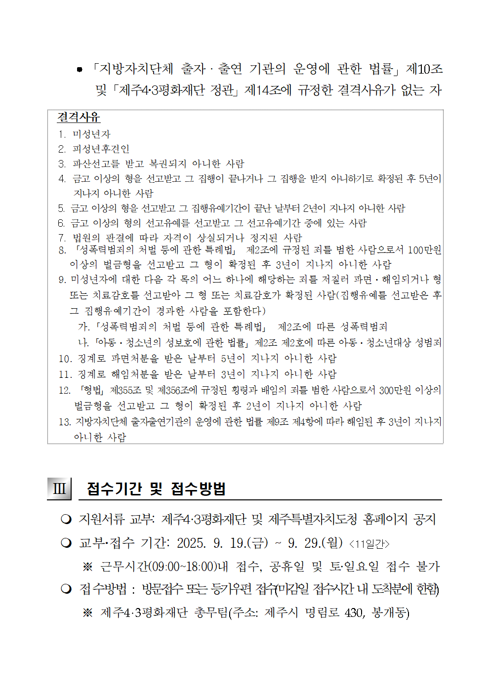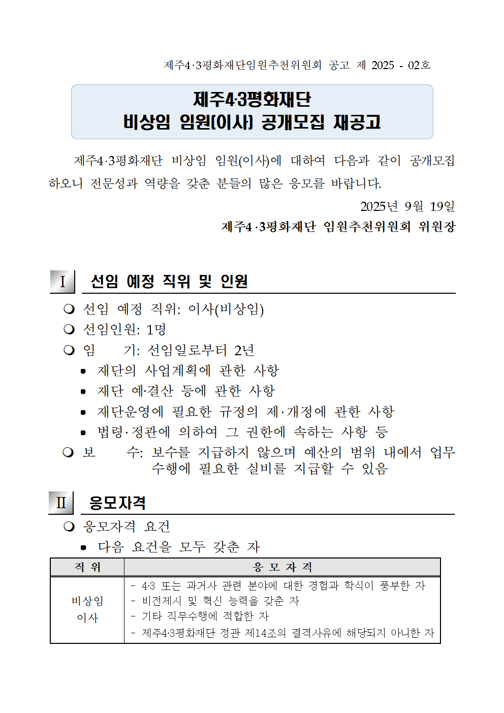 [공고]제주4.3평화재단 비상임 임원(이사) 공개 모집 재공고