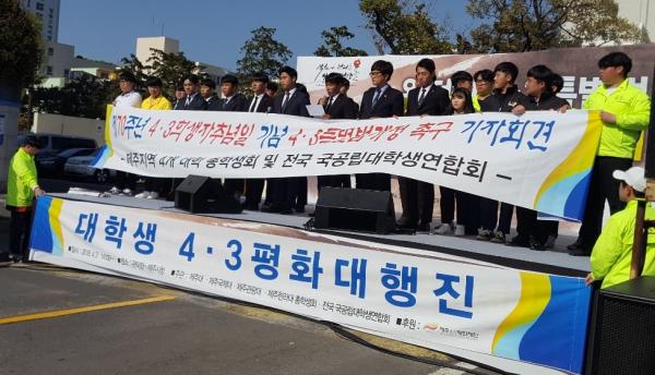 제주지역 4개 대학 총학생회 및 제주대학교 중앙운영위원회, 전국 국․공립대학생연합회 대표 학생들은 제주 땅에서 벌어진 가슴 아픈 참극이 이제는 화해와 상생, 평화와 인권의 상징이 될 수 있기를 바라며 “정부가 국가폭력의 희생자들에 대한 정당한 책임을 질수 있도록 4․3특별법 개정안의 조속한 통과와 제주4․3을 전국 학생들이 배울 수 있는 교육환경 및 제도개선, 제주4․3에 이념잣대를 대지 않도록 정명을 찾아줄 것을 촉구한다.”고 말했다.