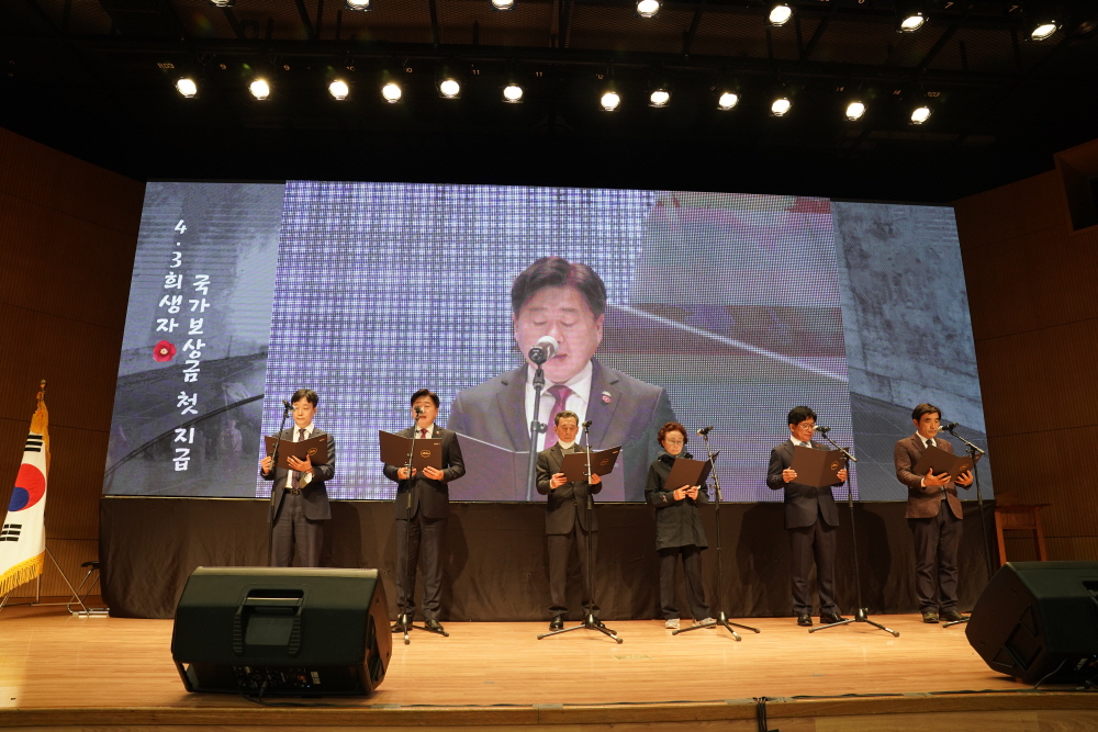 이어 “이제 우리는 아픈 역사로 품은 평생의 한을 덜어내며, 빛나는 미래를 향해 두 손을 꼭 맞잡아 나아가겠다”며 “4·3은 신냉전 시대의 위기에서, 지구촌 국가들의 연대를 이끌 세계적 평화의 모범모델이 될 것”이라고 선언했다.