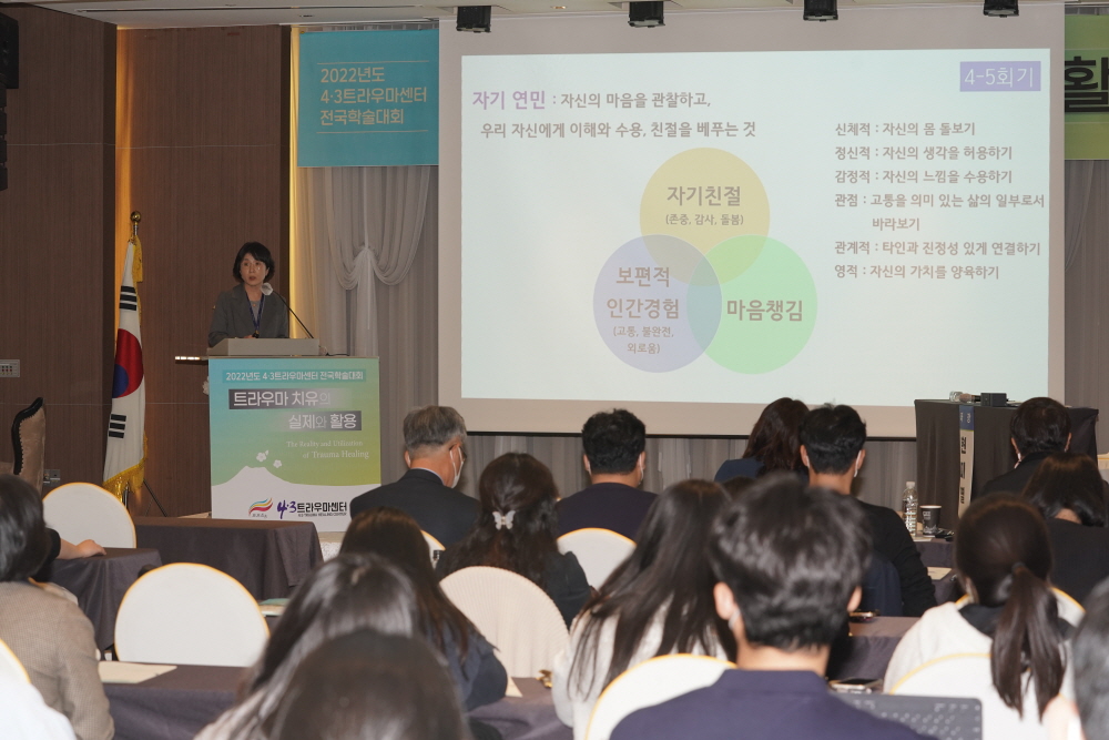 4‧3트라우마센터(센터장 정영은)는 지난 11월 11일 제주아스타호텔 아이리스홀에서 ‘2022년도 4‧3트라우마센터 전국학술대회’를 개최했다.