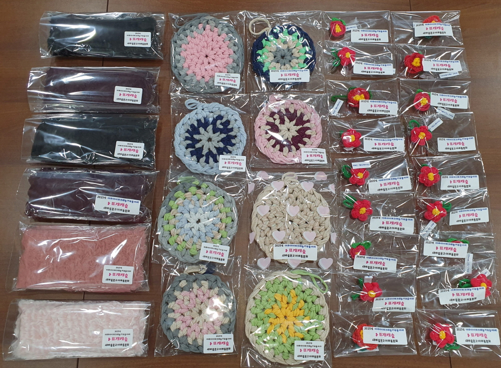 새마을문고 아라동분회(회장 배주원)와 아라아이파크새마을작은도서관 재능기부동아리 ‘뜨개캐슬’은 1월 19일 제주4‧3평화재단을 방문해 지난해부터 회원들이 직접 뜨개질로 한땀한땀 짜낸 목도리와 동백 소품 등 수제물품 250개를 전달했다.