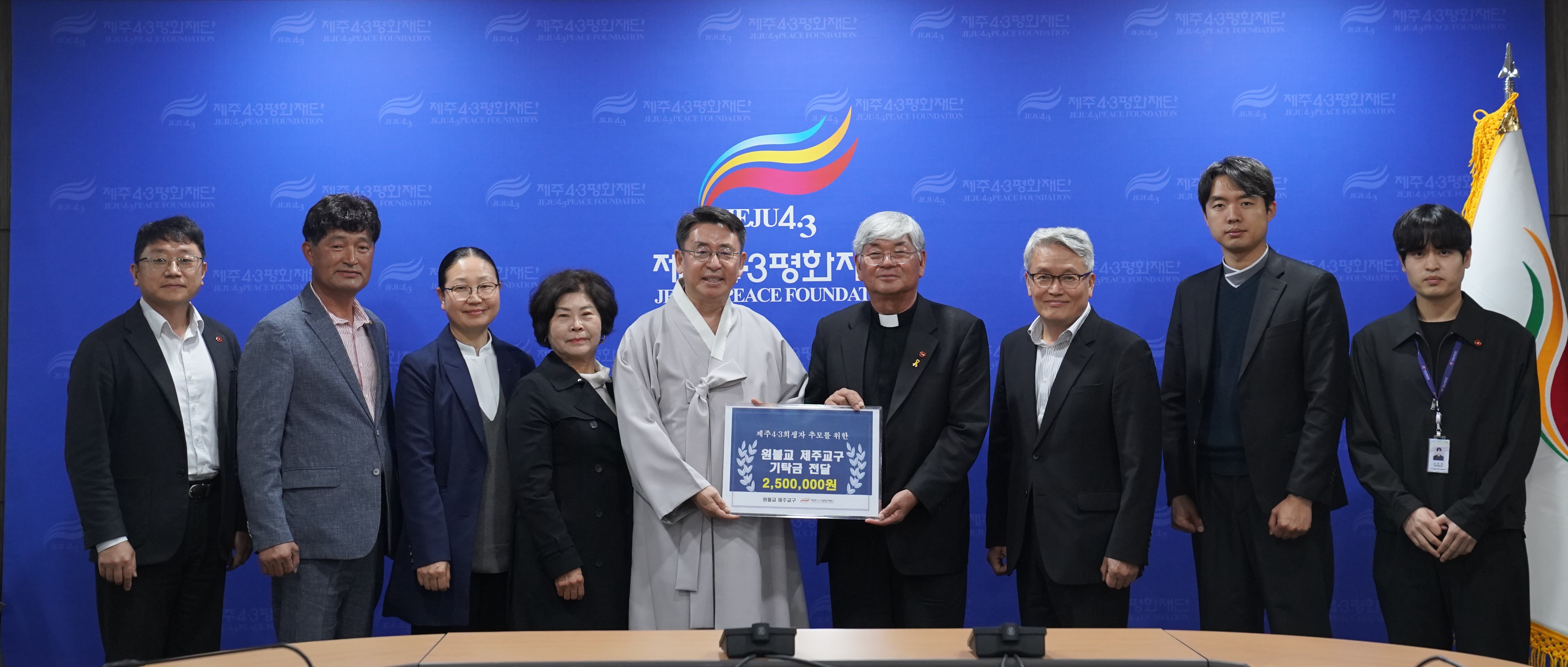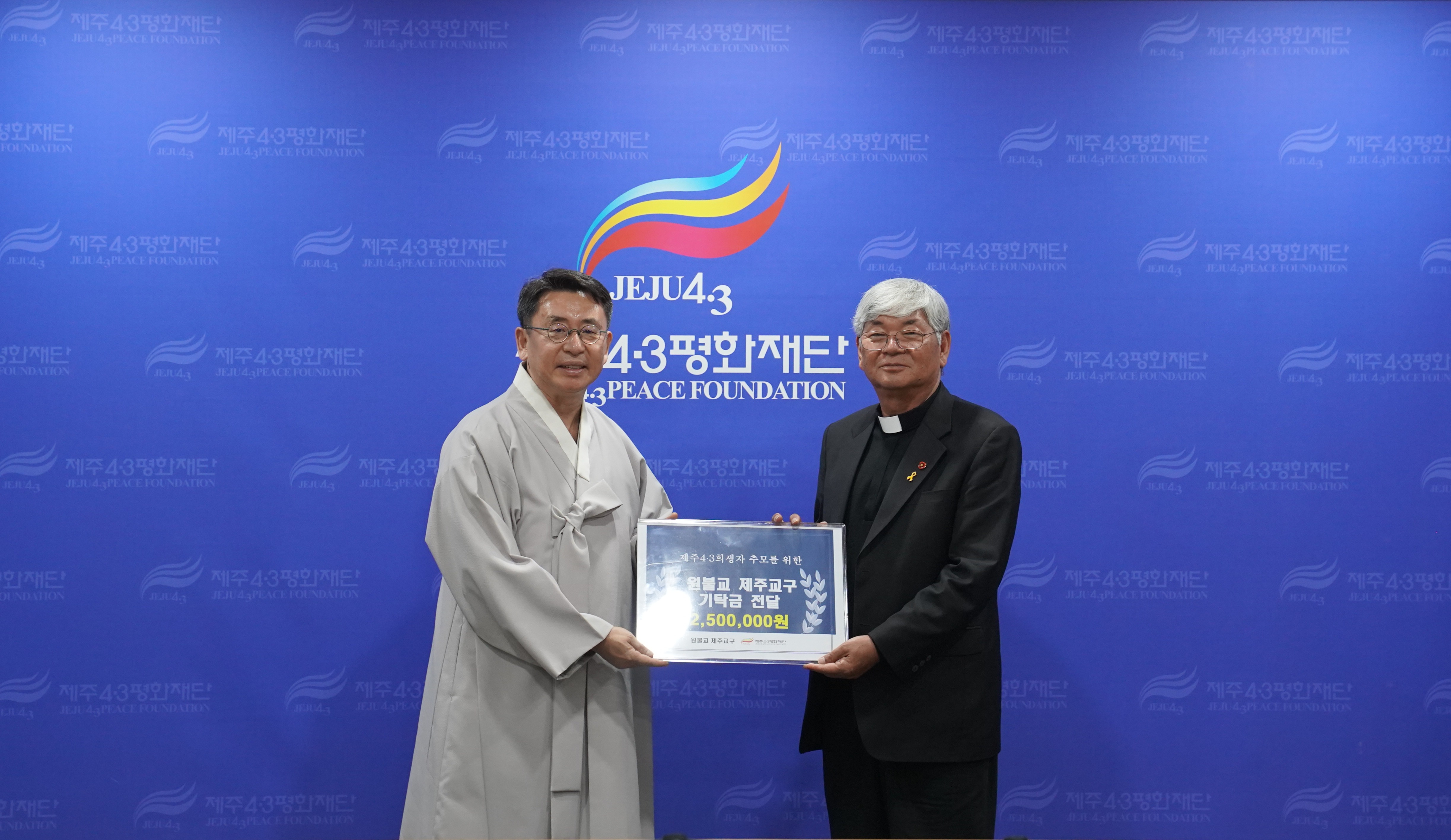기탁금은 원불교 제주교구가 지난 3월 29일 4・3평화공원에서 봉행한