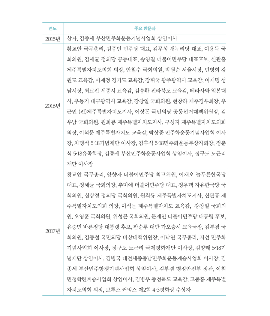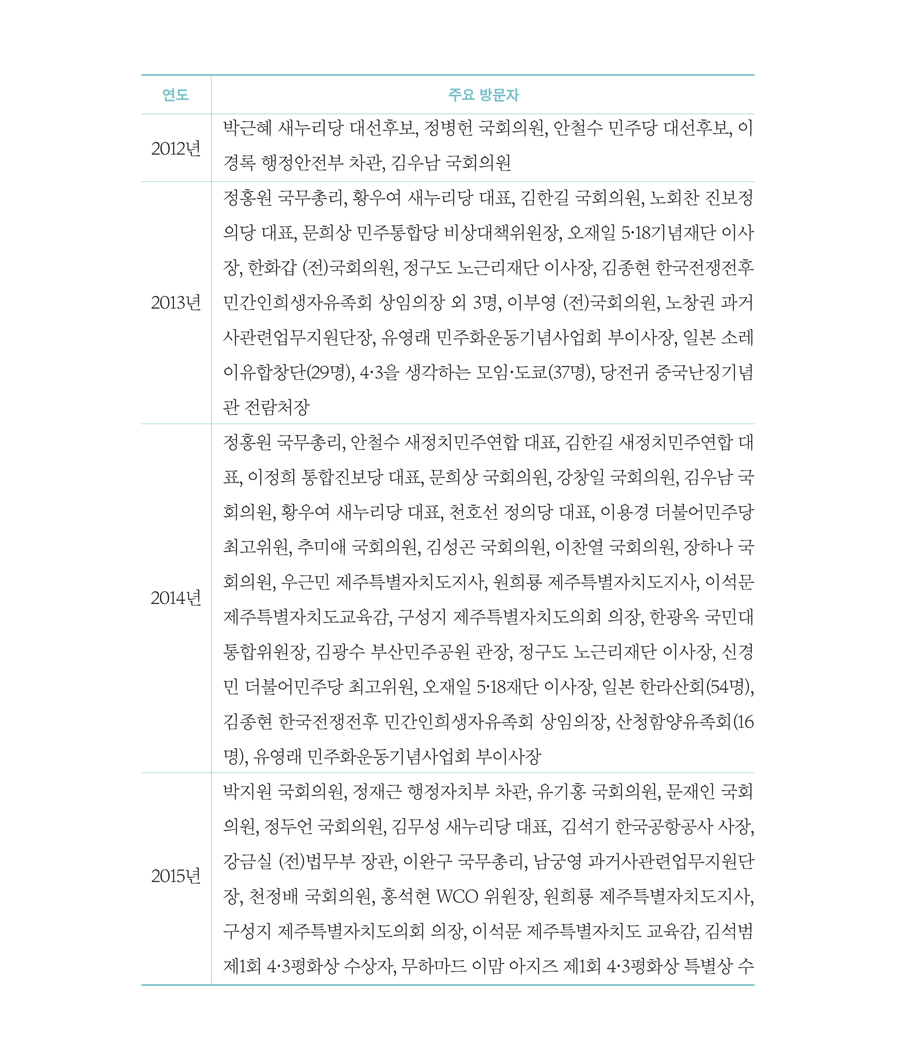 10년사 제주4‧3평화공원 주요 방문자 명단