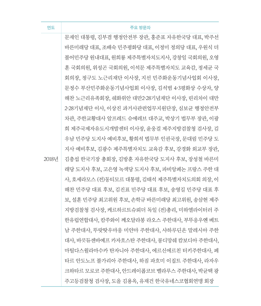 제주4‧3평화공원 주요 방문자 명단 ( ~ 2018)