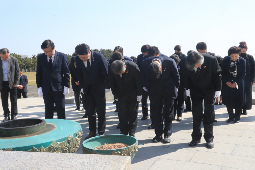 21대 국회의원 선거 제주지역 당선인(송재호, 오영훈, 위성곤) 참배