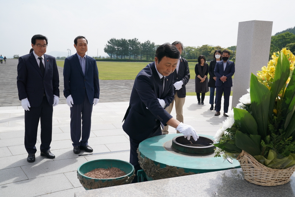 취임 이후 처음으로 4‧3평화공원을 방문한 고정화 회장은 송승문 4‧3희생자유족회장과 양조훈 4‧3평화재단 이사장의 안내로 위령제단을 참배하고 위패봉안실, 행방불명인 표석, 유해봉안관, 각명비 등을 둘러봤다.