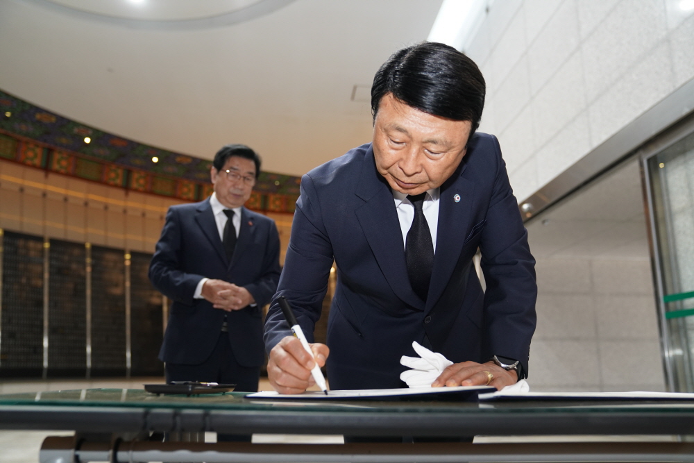 이어 방명록에는 “무고한 4‧3희생자의 영혼을 위로합니다”라고 적었다.