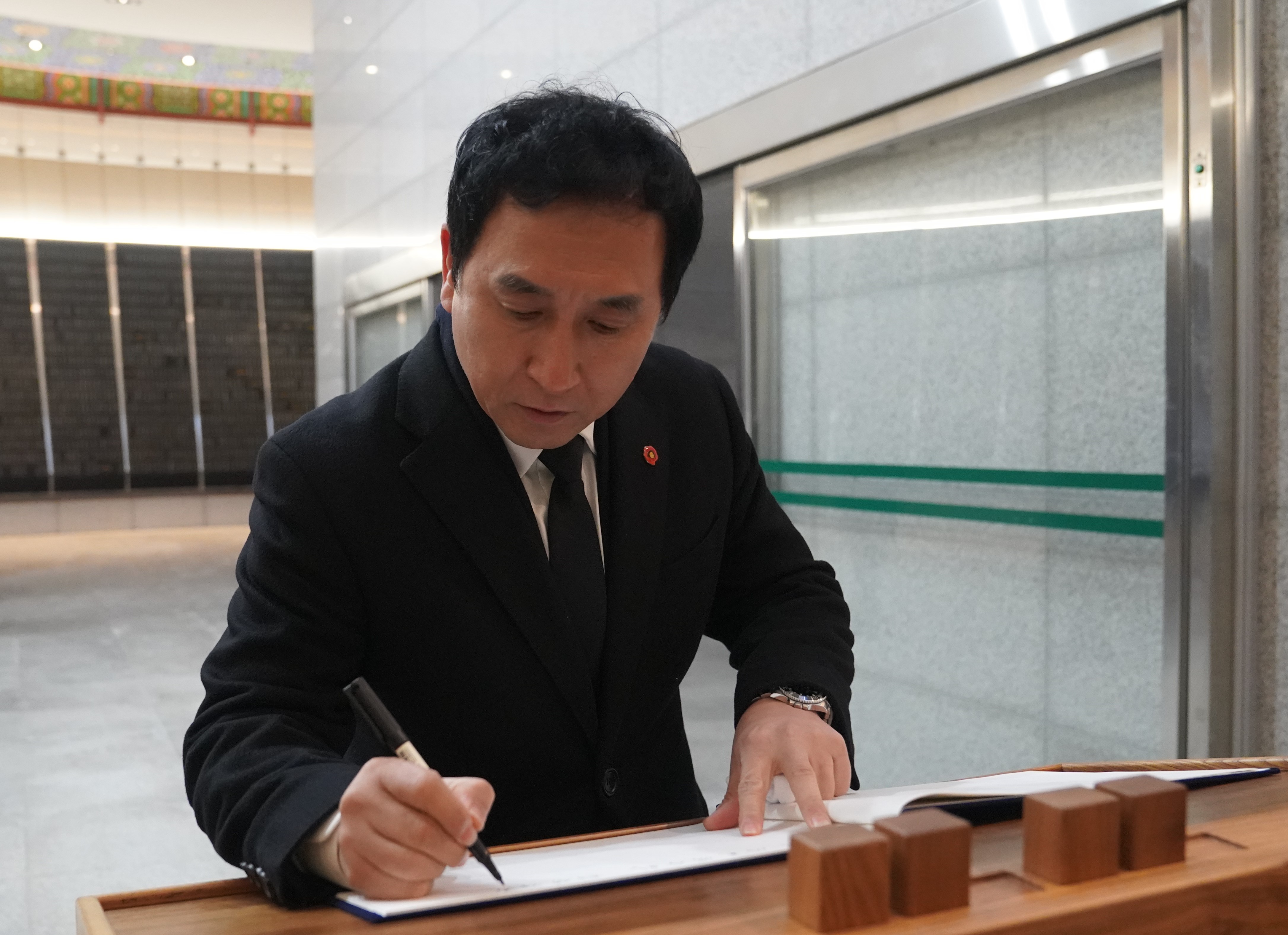 고우일 NH 농협은행 제주본부장은 위패봉안실 방명록에 '4·3의 아픈역사와 희생자분들의 넋을 기리며 화합과 상생의 미래로 나아가는데 제주농협이 함께하겠습니다.'라고 남겼다.