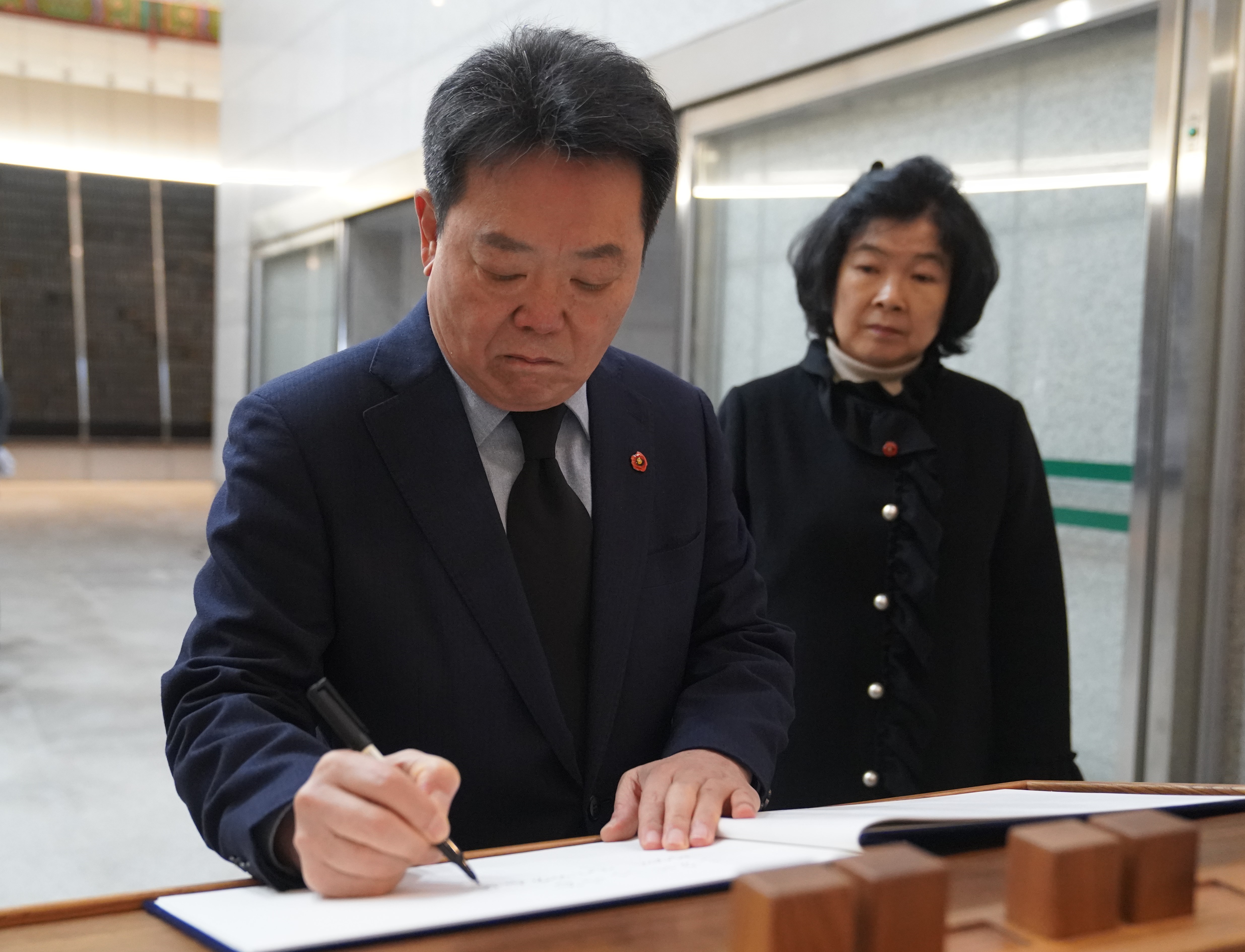 허용진 국민의힘 제주도당 위원장은 위패봉안실 방명록에 '그날의 그 아픔 영원히 기억하겠습니다.'라고 남겼다.