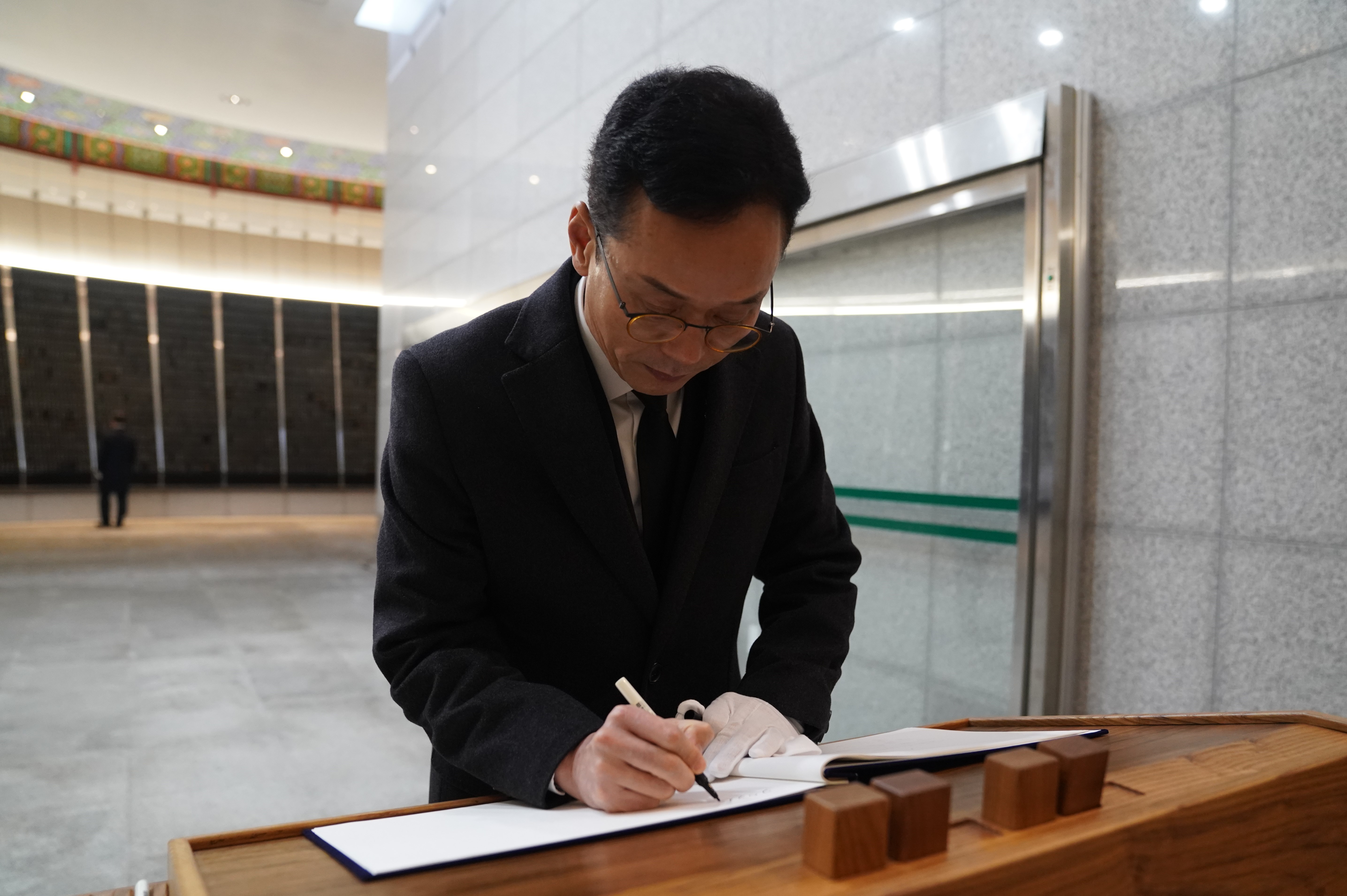 제주개발공사 임직원 일동은 위패봉안실 방명록에 '2024년도에도 4·3 희생 영령님들의 숭고한 전신을 가슴 깊이 새겨 나가겠습니다.'라고 남겼다.