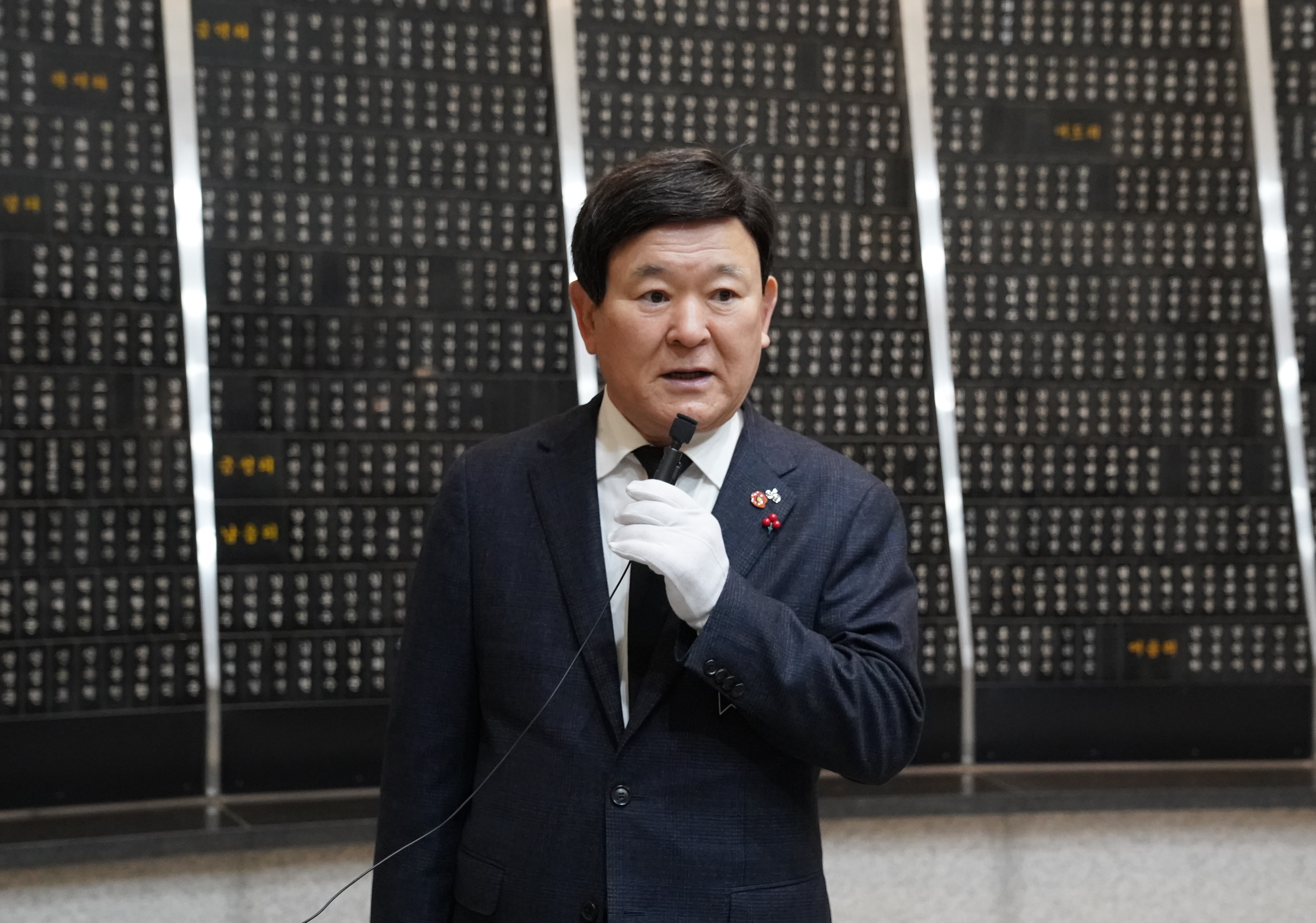 김광수 교육감은 '우리 아이들에게 평화를 위한 고귀한 희생정신 열심히 교육하겠습니다.'라고 남겼다.