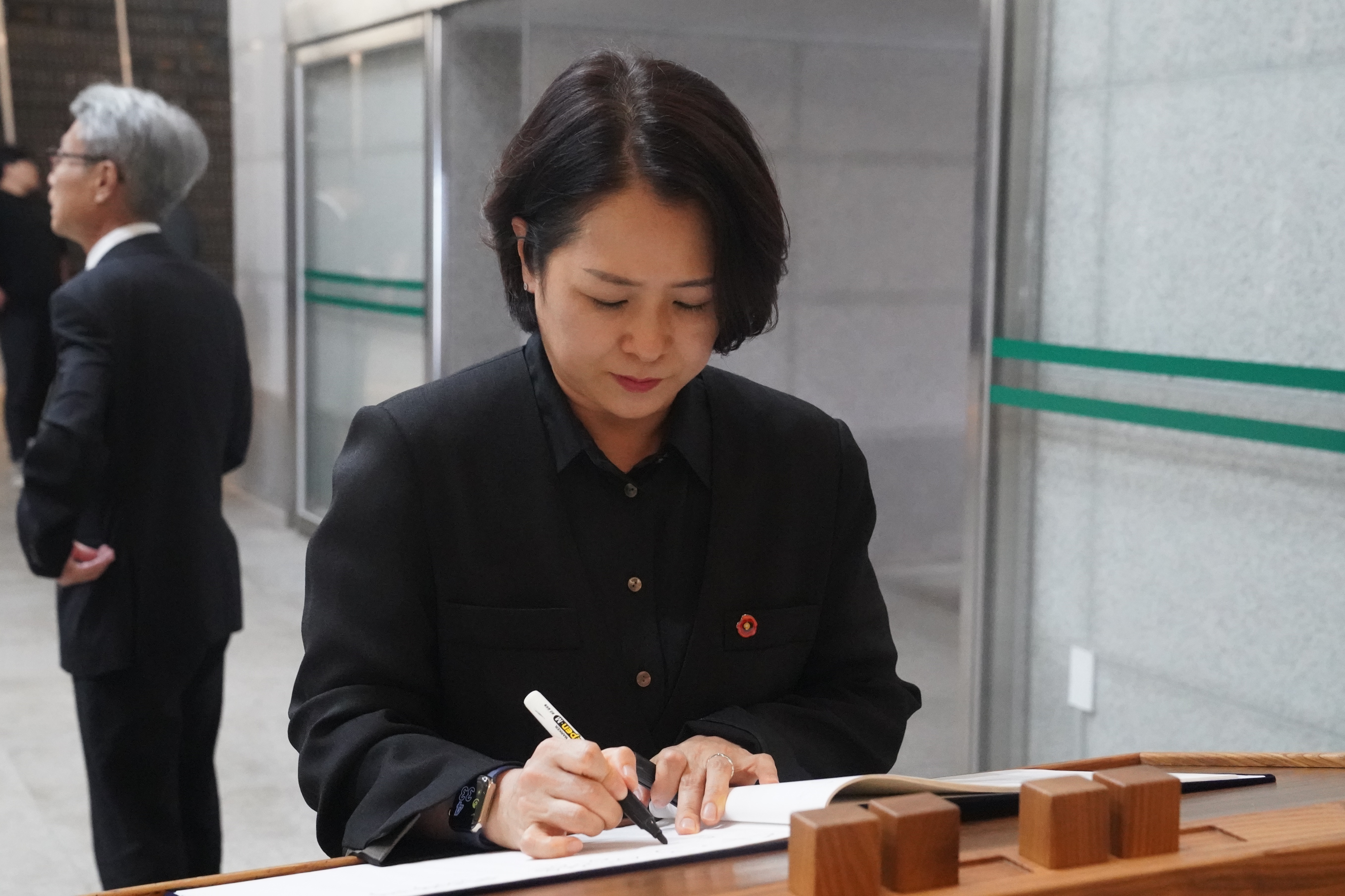 오수경 센터장은 방명록에 '4·3영령을 위로하며 트라우마 치유에 더욱 힘쓰겠습니다.'라고 남겼다.
