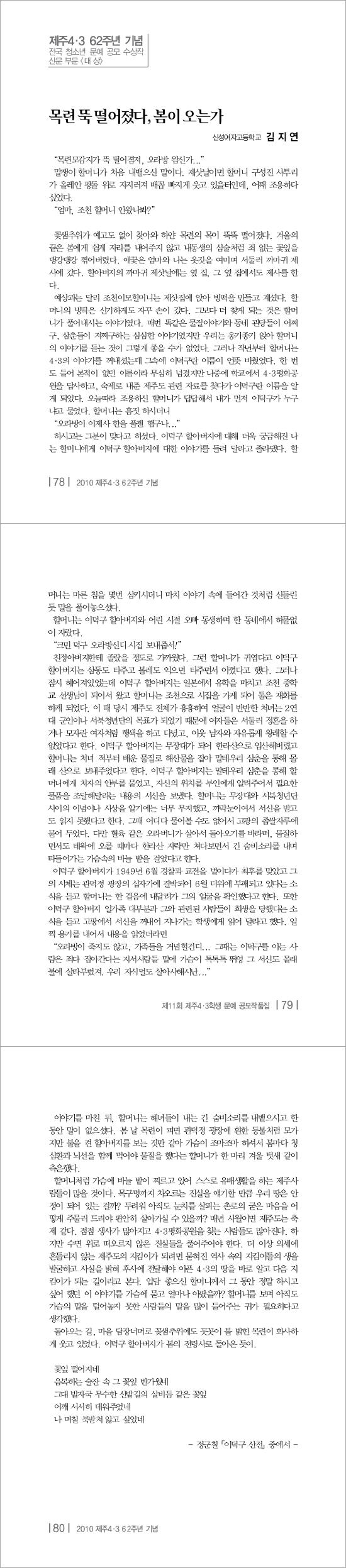 2010년 제11회 전국청소년4·3문예공모 - 산문 부문 당선작