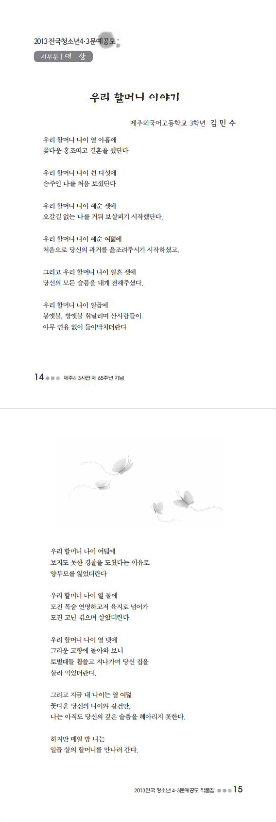 2013년 제14회 전국청소년4·3문예공모 - 시 부문 당선작