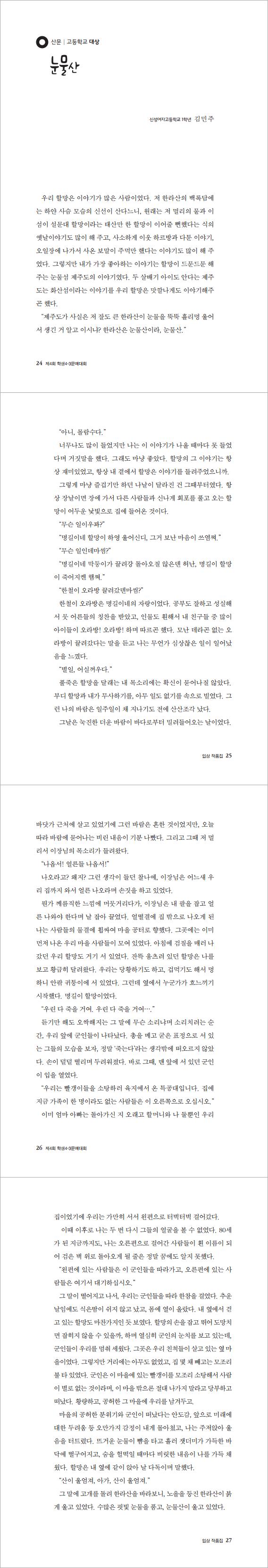 | 산문 | 최우수 | 우리의 한 | 제주여자중학교 3학년 김나연 | |
