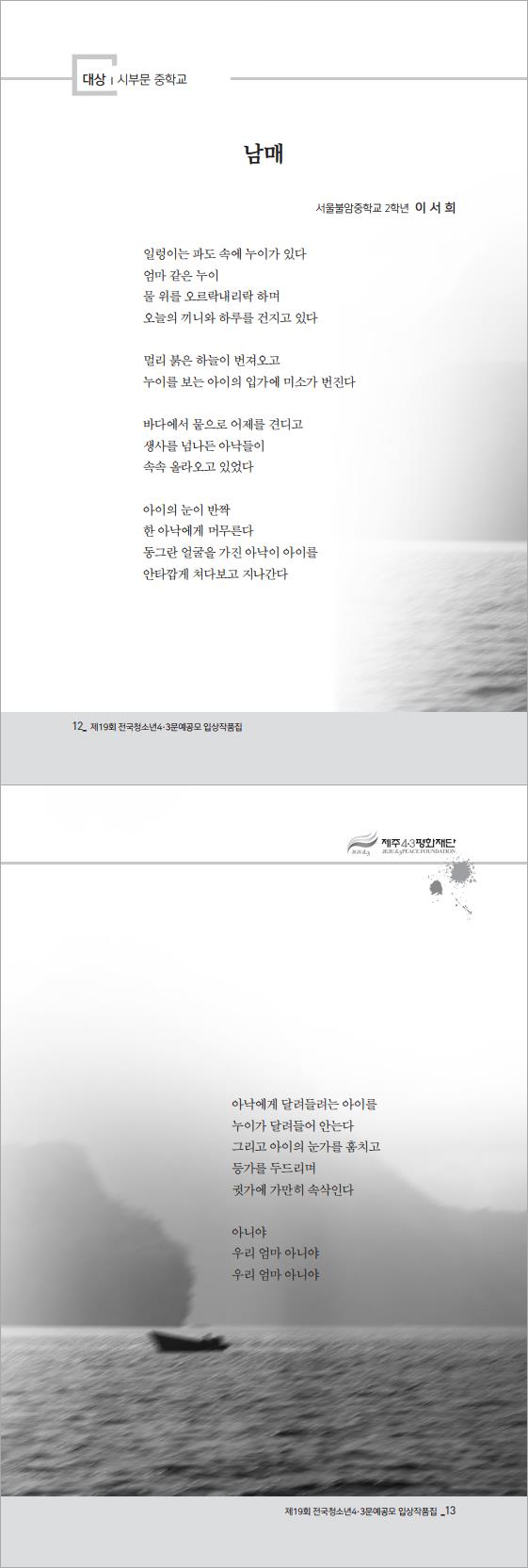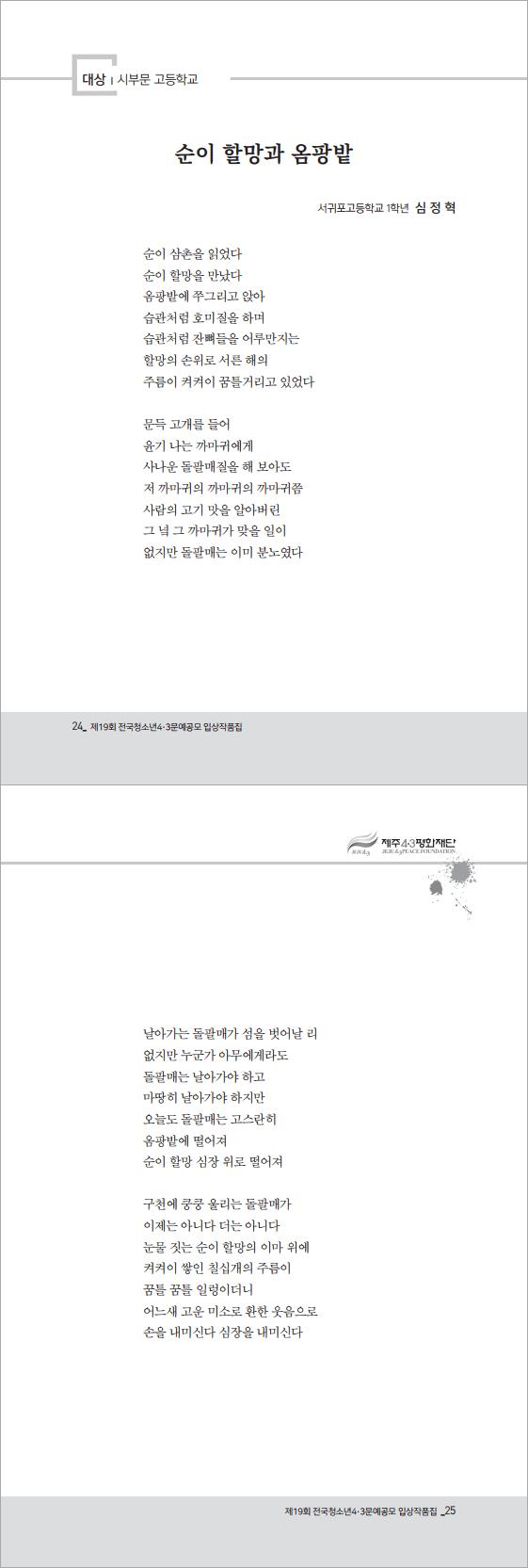 2018년 제19회 전국청소년 4·3 문예공모 시 부문 당선작