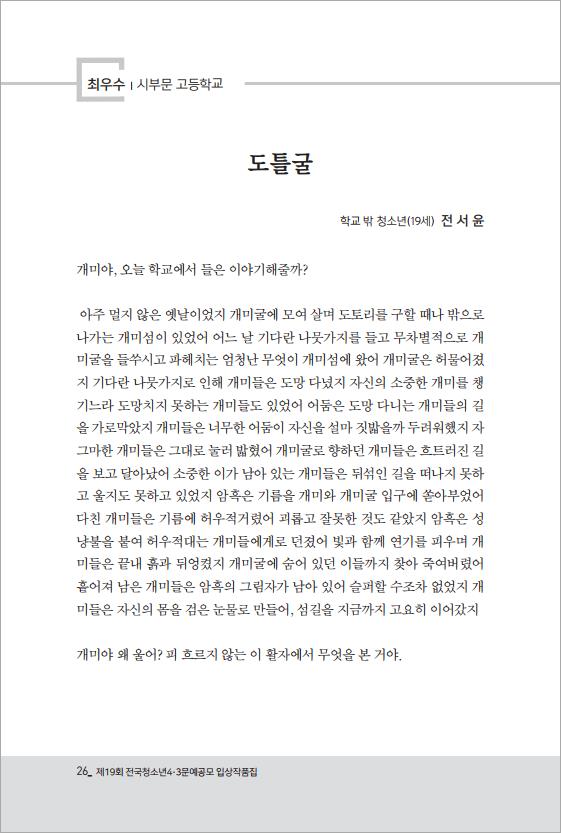 | 우수 | 먼지들의 밤 | 제주대학교사범대학부설고등학교 2학년 심영은 |
