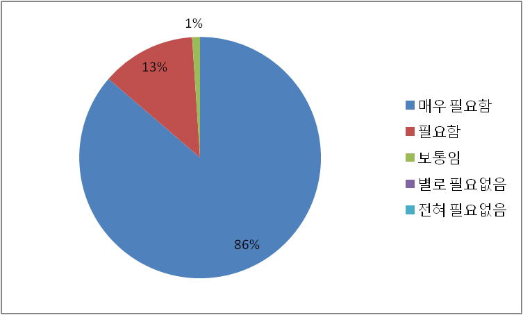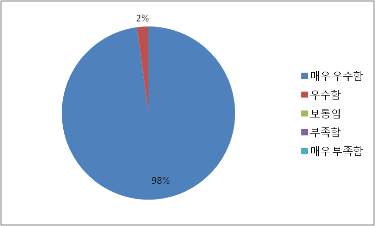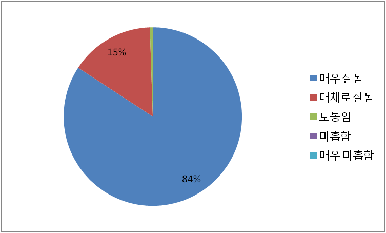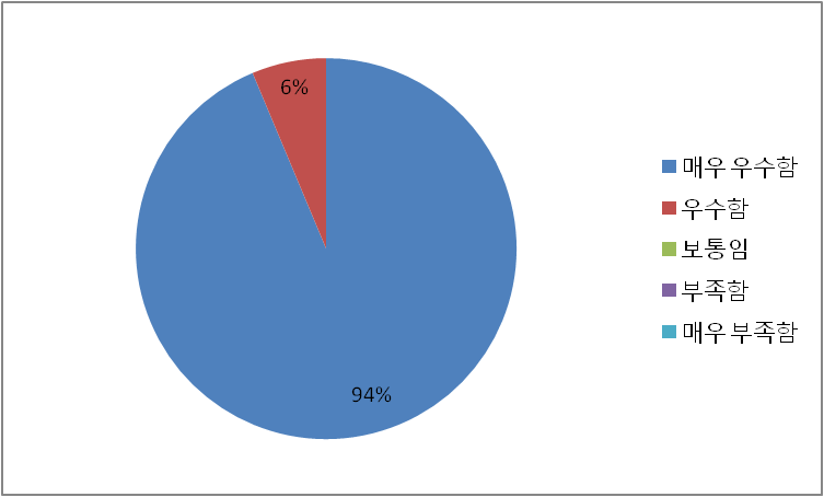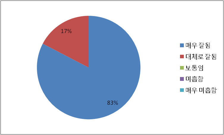 이외에도 연수과정 유지 필요 교과과정 편성도 강사선정 교육교재 연수시설 및 운영 연수담당자 친절도 등에 80%이상의 긍정적인 답변을 받았다.