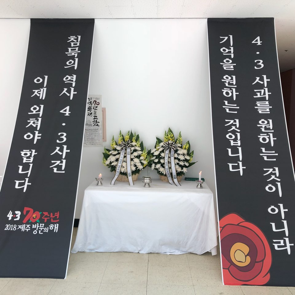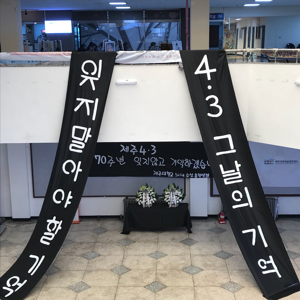 한편 제주지역 4개 대학 총학생회는 3월 26일(월)부터 4월 3일까지를 4․3추모기간으로 설정, 임시분향소를 마련해 학내 추모분위기를 조성하며 ‘4․3바로알기책자와 동백배지를 배포하고 있다.