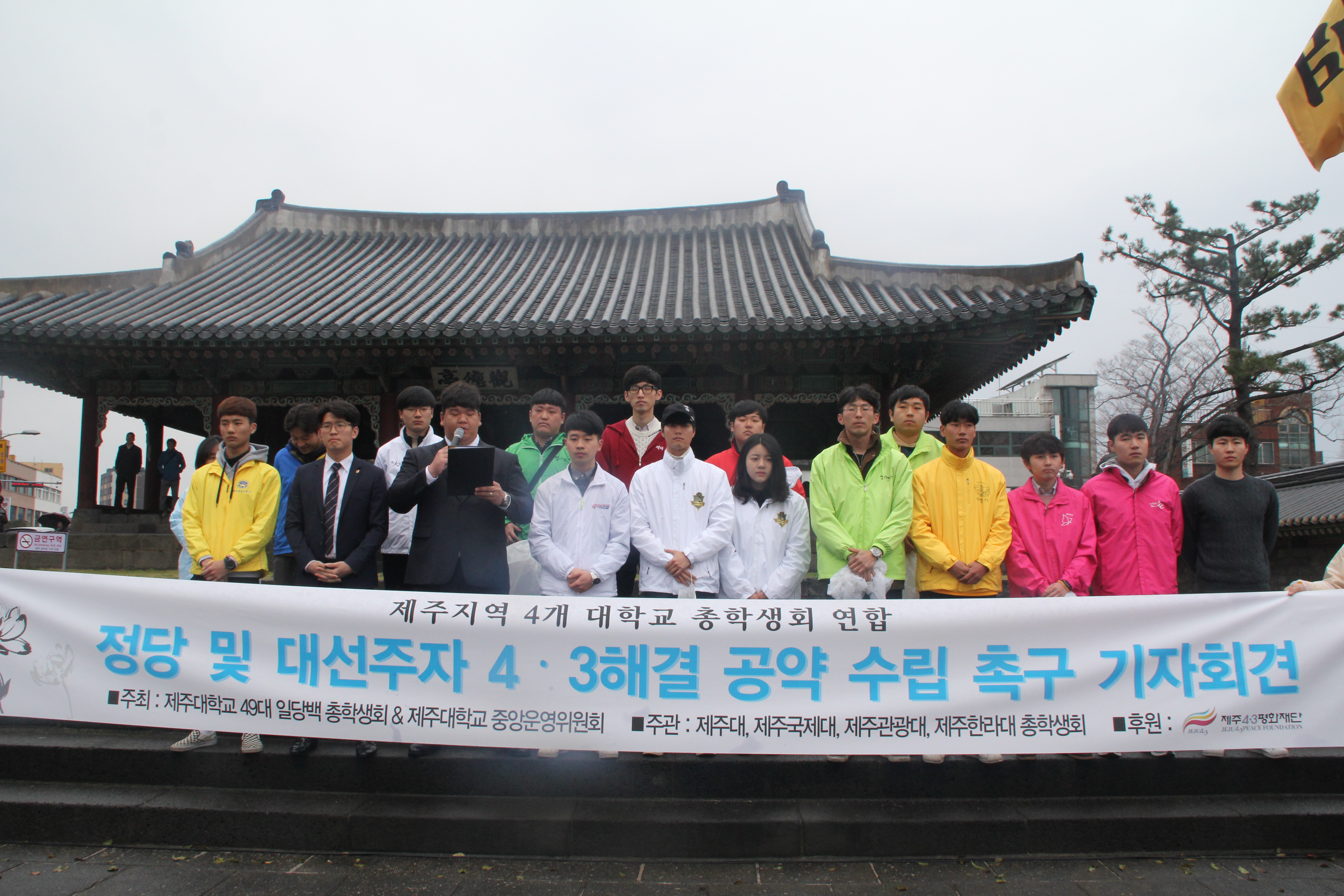 제주시청 광장에 모인 학생들은 4․3특별법 개정 촉구 기자회견을 통해 정부와 국민들에게 대학생들이 바라는 4․3해결 과제들을 알리고,4․3의 정명 찾기와 대학의 4․3역사교육 활성화를 위한 4․3특별법 개정을 촉구할 계획이다.