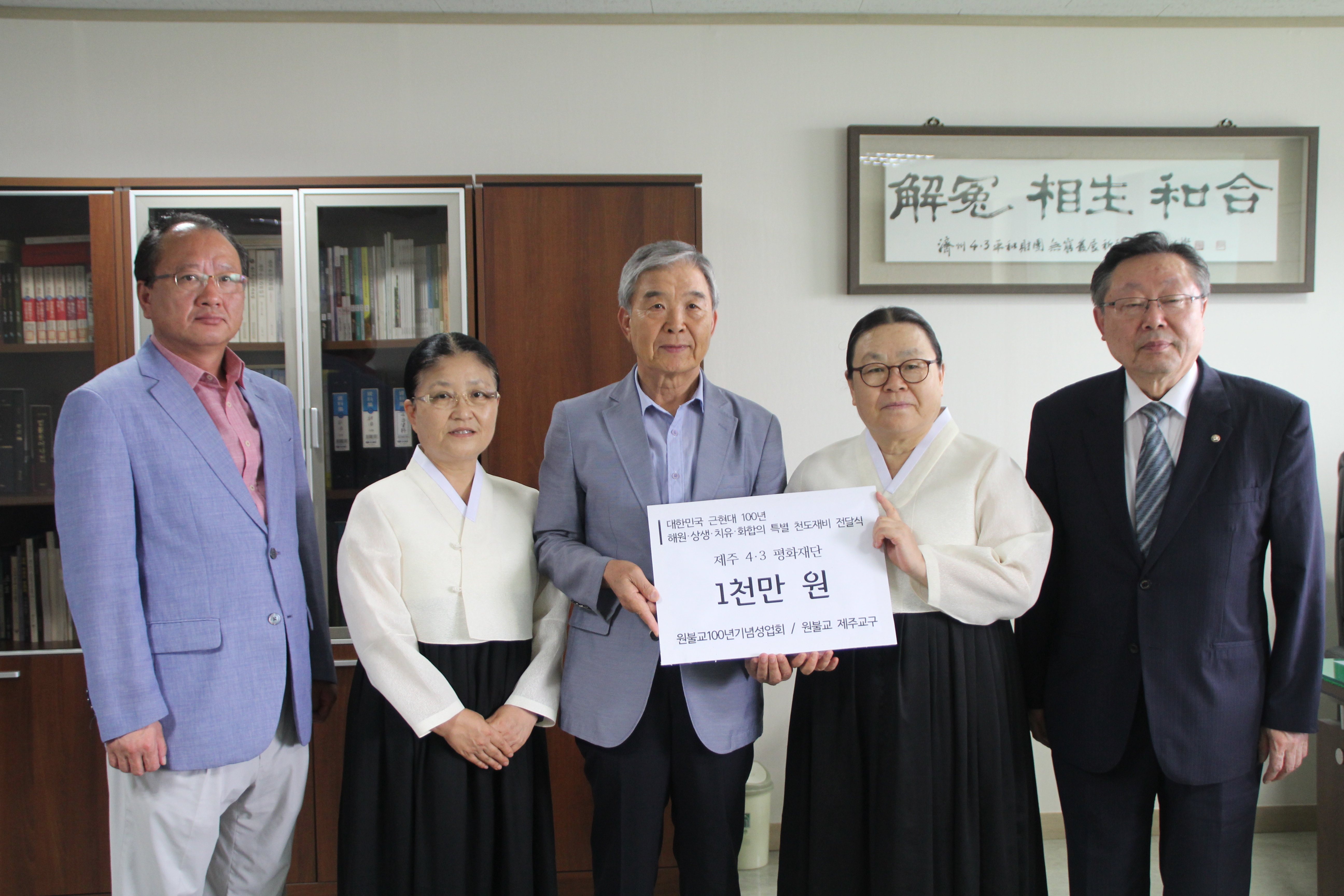 원불교 제주교구 4․3학술연구기금 1천만 원 기탁